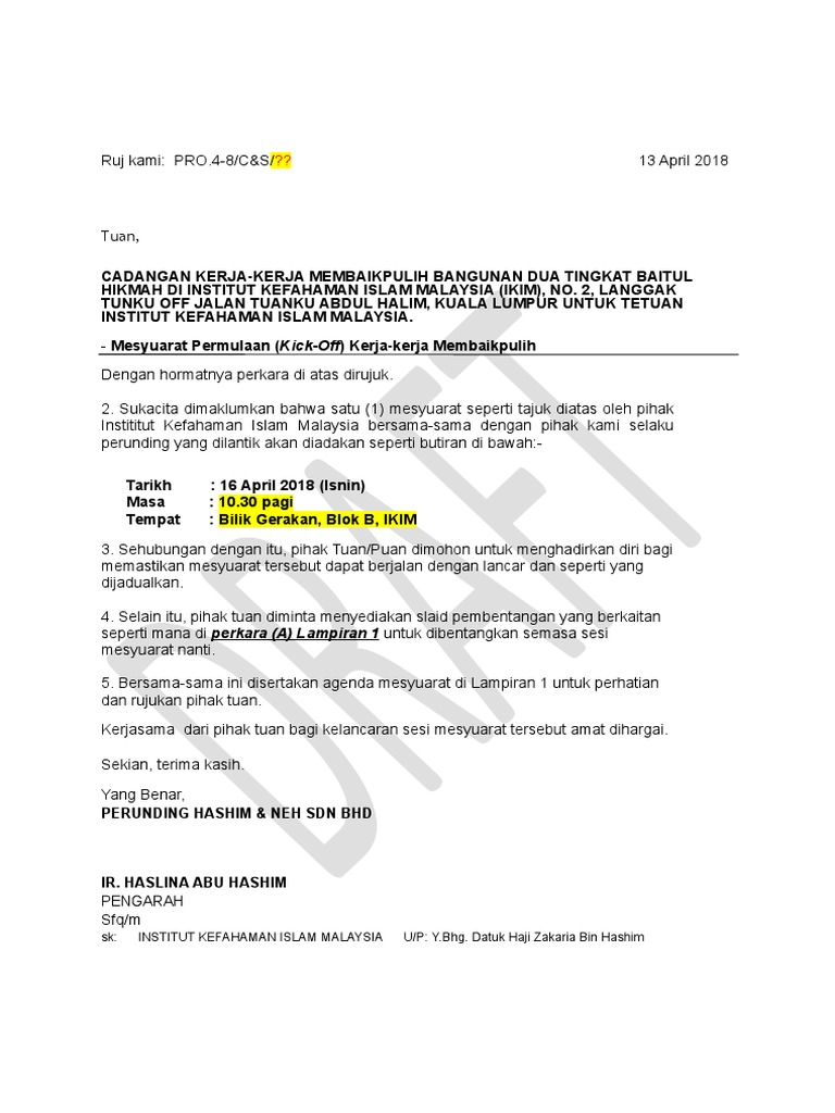 Surat Jemputan Mesyuarat Permulaan Pdf