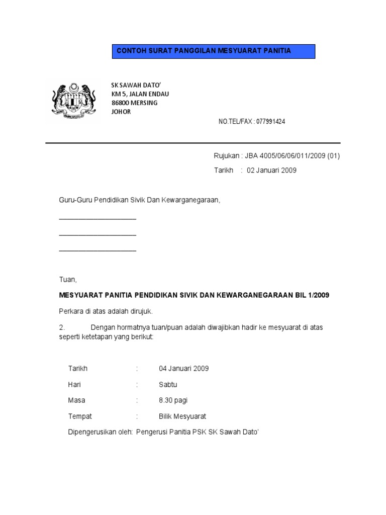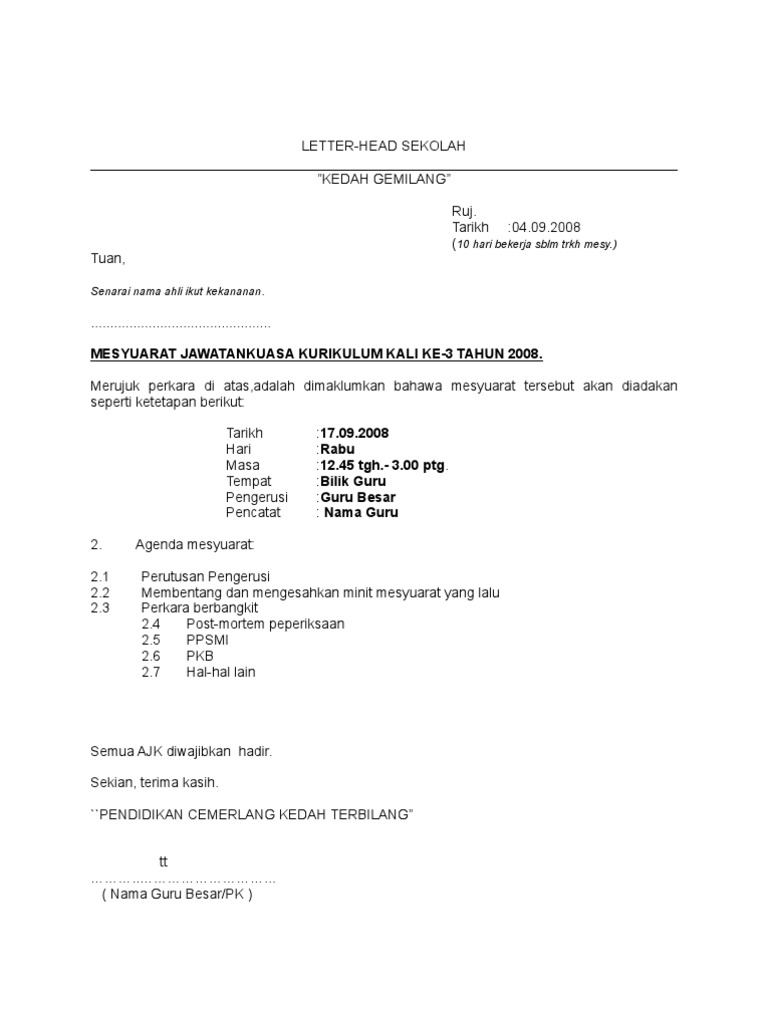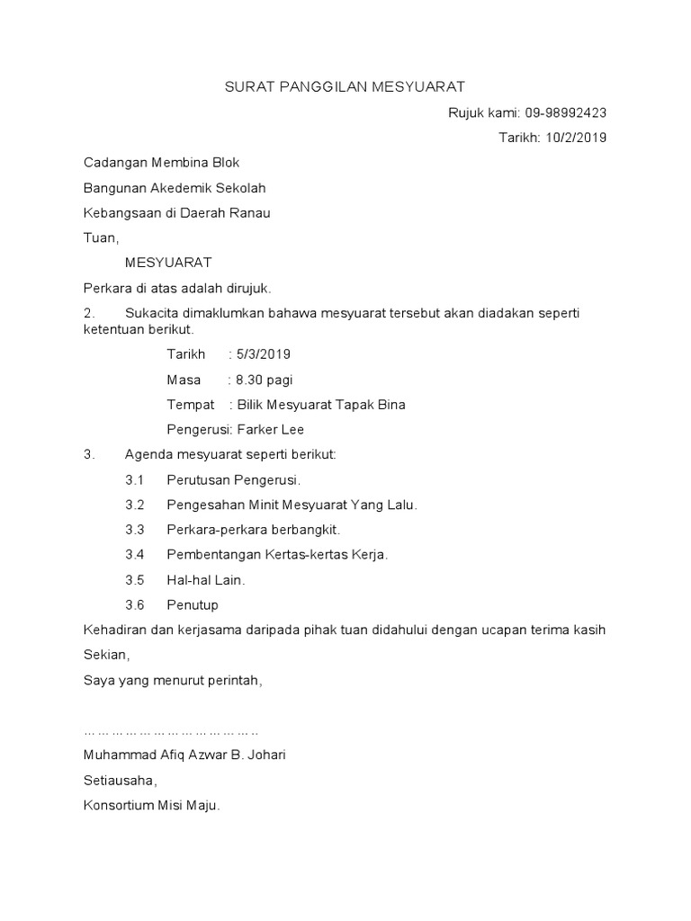 Contoh Surat Panggilan Mesyuarat Pdf